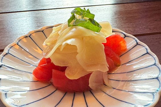 トマトの酸味に生姜の香りが不思議とマッチしている。口の中をリセットしてくれる絶妙な箸休めだ。