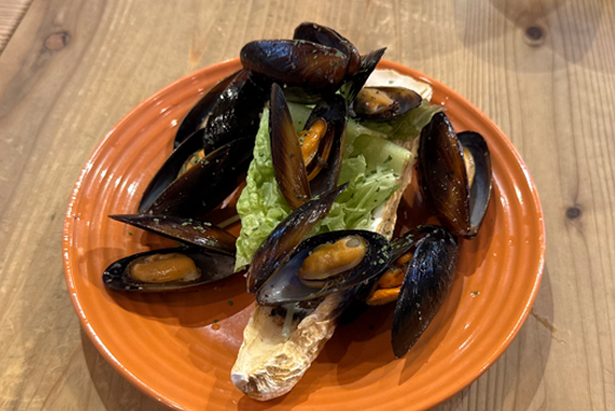 しばらくして「お通し」が出てきた。「ムール貝の酒蒸し」…かな?小振りだか、しっかりした味で酒のつまみにぴったりだ。