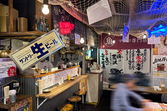 「野毛まぐろ食堂」は「満天ホール」という施設の中にある5店舗の中のひとつだ。とても狭い店だが、予約必須の人気店だ。