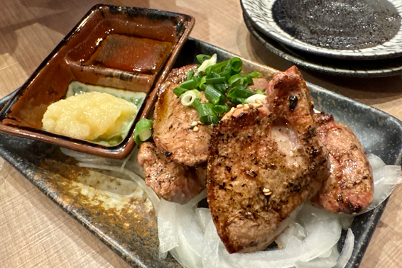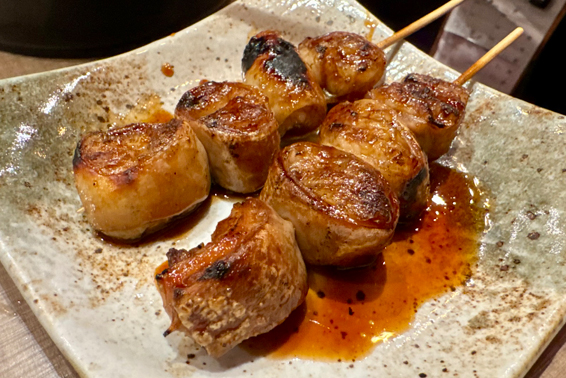 結構しっかりと表面を炙られた白レバーは、とろける…という期待を見事に裏切り、ザクッとした食感だ。これはこれでレバーが新鮮であることが良く分かる。大振りな白レバーのたたきにごま油+ニンニクは最強。これひと皿で、豚串への期待がグッ!と高まる。