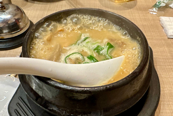 「もつ煮込み」はグツグツと煮えたぎった状態で登場。火傷に注意しながら食べてみる。よく煮込まれてトロトロになったモツの甘みが口の中に広がる。しかも大きくカットされているので食べ応えがある。これ”も”美味い。