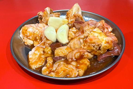 店員さんに「何を注文したら良いですか?」と聞いたら、速攻で勧められた看板メニュー。何種類かのホルモンが盛り合わされていて、焼きながら「これなどの部位かな?」なんて考えながら食べるのも楽しい。