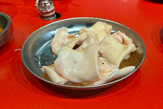 コリコリクニュっとした食感が心地よく、美味いセンマイ刺しだ。クセが少なくさっぱりしていて、ホルモン焼きのお供として優秀なひと皿だ。