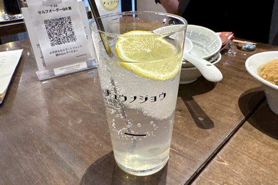 店名が入った「チュウノジョウレモン」は、シャリキンを使用したレモンサワーだ。グラスを含めて全体的にもう少し冷やしてほしいような気がするが、レモンの爽やかな酸味と程よい甘みで、せんベロが「美味いな♪」と思うレモンサワーのひとつだ。