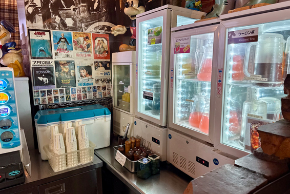 ハンバーグを注文するとライスとワンドリンクが付いてくるので、ドリンクコーナーでペプシを紙コップに注いだ。炭酸飲料の他に緑茶、アイスコーヒー、ピンクレモネード、ウーロン茶が選べる。おかわりは100円だ。