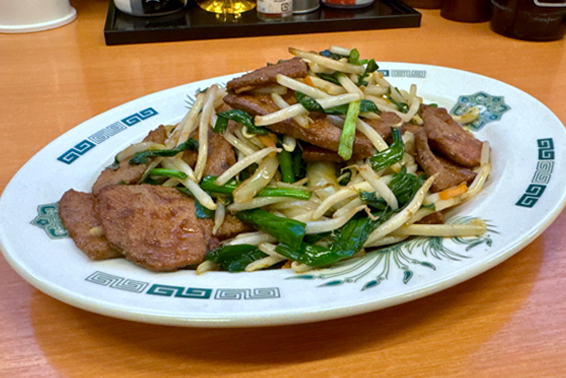 タブレットに表示されるメニューに「ニラレバ炒め」があったので、迷わず選択。大きめのレバーがたくさん入っている。シャキシャキもやしが良いアクセントになっている。やや味は濃いめなのでホッピーがすすむ。これは白飯で食べても美味そうだ。