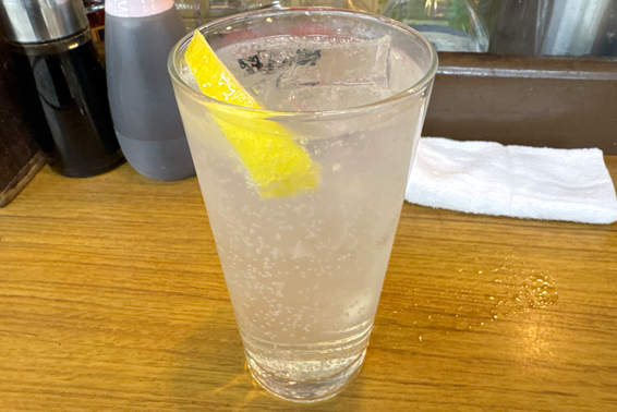まずは「レモンサワー」でスタート♪「石松」の「レモンサワー」は「強炭酸・強レモン」でせんベロ的には、高評価のレモンサワーのひとつだ。税込みで400円もうれしい価格だ。