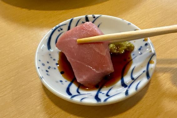 早速「中トロ」をパクっ♪入れた瞬間から口の中ですーっととろけて行く。ちょうど良い脂感だ。これ一枚で他の刺身も美味いことが想像できる。