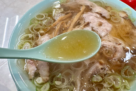 スープは澄んだ黄金色で、あっさり醤油味。もしかしたら「あっさり」という表現は適切ではないかもしれないが、やさしい旨みに富んだ「原点回帰」なスープだ。