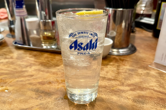 まずは「レモンハイ」を注文。「さんだーす」はドリンクが全般的に美味いのが嬉しい。このレモンハイも、強めの炭酸にほどよい甘みと酸味が重なり、すっきりとした飲み口だ。どうやって作っているのか聞いてみると、サーバーのレバーで炭酸とレモン風味の焼酎を調整して注いでいるという。なるほど、便利なサーバーがあるものだ。