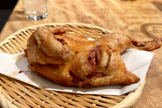 皮はパリパリ、肉はジューシー。まさにこの言葉がぴったりだ。熱々のところをかぶりつくと、塩梅もちょうど良い。これは文句なしに美味い半身揚げだ。「さんだーす」に来たら、是非とも食べておきたい一品である。