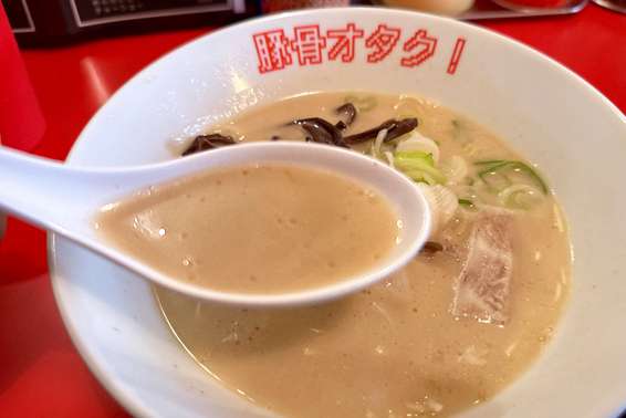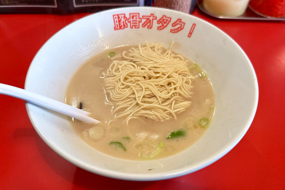 関内駅から徒歩5分ほど。少し分かりにくい場所にあるが、思わず足が止まる店名のラーメン店が「豚骨オタク!」。看板メニューはもちろん豚骨ラーメン。濃厚ながらクセのない一杯で、今時1000円以内で満腹と満足を得られる、幸せな豚骨ラーメン店だ。